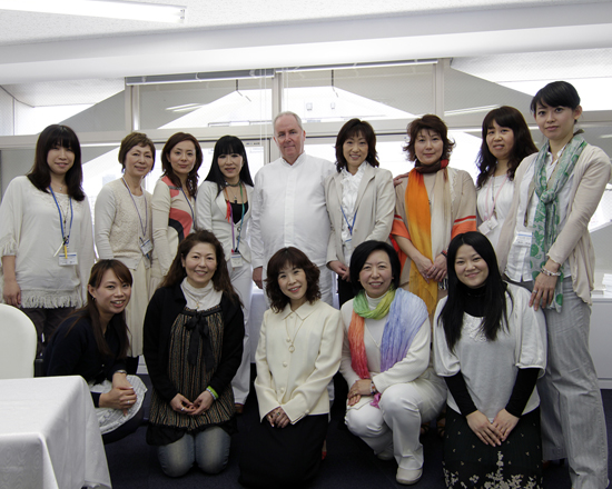 オーラソーマ社シャイアファームにて、バイオダイナミック農法で栽培された無農薬のチャクラティーもふるまわれました。活気あるイベントの合間に、来場者の皆様のチャクラに働きかけてホッと一息を楽しむ人も。飛び入りでマイクさんも登場し最高潮を迎えます。ほかではお目にかかれない珍しいクリスタルの展示即売会、オーラソーマプロダクツの特別セール販売も大盛況。 マイク学長も登場し会場は最高潮の盛り上がり。