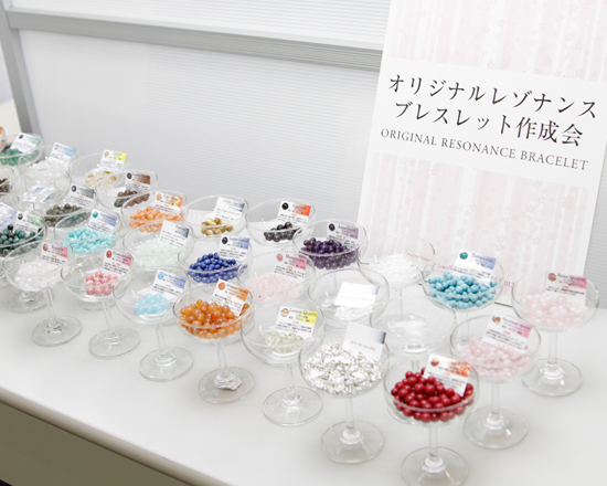 恒例の無料ジュエリーコンサルテーション、連日行列を作ったオーラ撮影、AEOS体験講座恒例の人気コーナーに加え、オーラソーマサロンの先生も協力していただきチャリティ作品を展示。